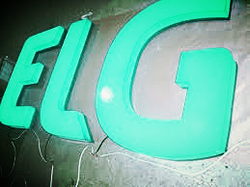 Refleja la luz al muro dando un halo en el contorno de las letras y logotipo